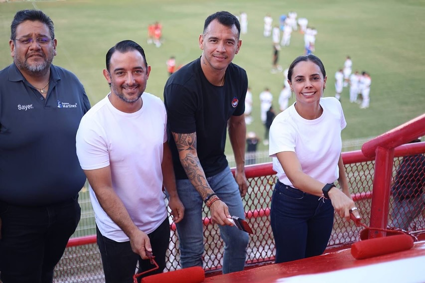 Con el firme compromiso de dignificar y mejorar los espacios deportivos de la ciudad, la presidenta municipal de Benito Juárez, Ana Paty Peralta, participó activamente en una jornada de mantenimiento y pintura en el emblemático Estadio Cancún 86.