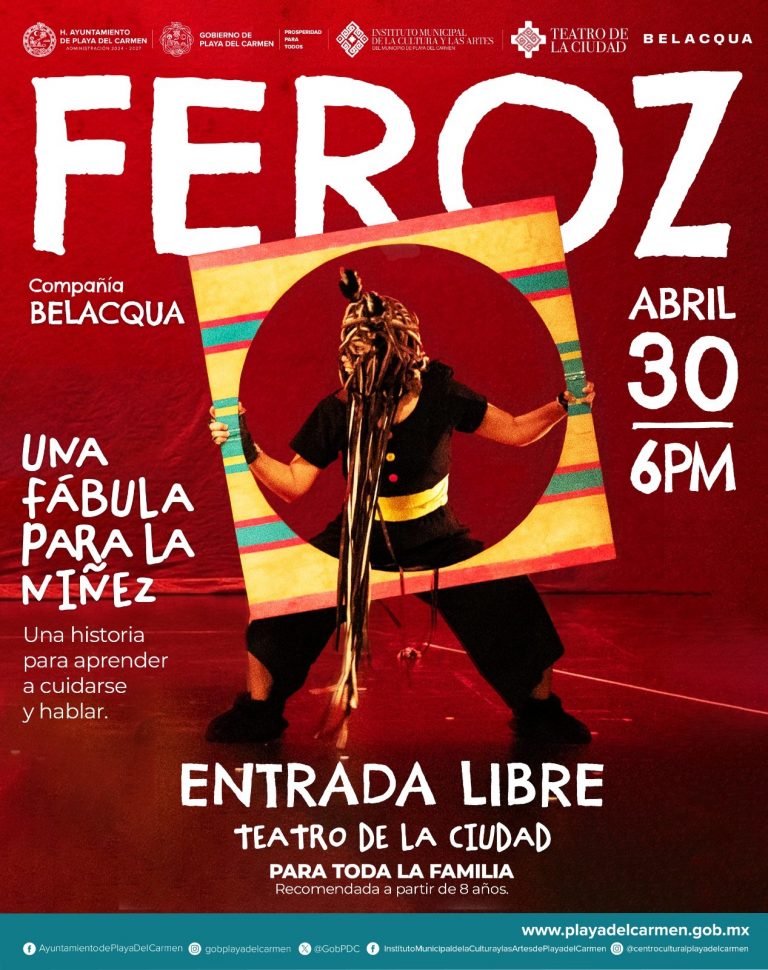 Playa del Carmen, Quintana Roo.- El gobierno de la presidenta municipal Estefanía Mercado invitó a las familias playenses al Teatro de la Ciudad, este miércoles 30 de abril a las 6 de la tarde para presenciar “Feroz”, una pieza que todas las niñas deberían ver y escuchar, como parte de la cultura de la prevención.