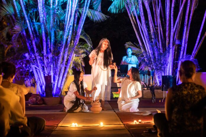 La actriz y dramaturga maya Socorro Loeza Flores explicó que Sujuy Ja’ se sustenta en textos antiguos como el Popol Vuh, los Cantares de Dzitbalché y relatos tradicionales, incorporando una narrativa femenina como eje central del montaje, desde la creación del mundo hasta la actualidad, con un mensaje de esperanza y resistencia cultural.
