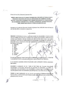 - Representantes de la Coordinadora de Autoridades Comunitarias, Agrarias, Municipales, Sistema Producto Maíz, Dignatarios Mayas y otros sectores sociales, acordaron puntos con autoridades estatales y federales para mejorar los caminos y sistemas de riego en las Comunidades rurales en Quintana Roo.
