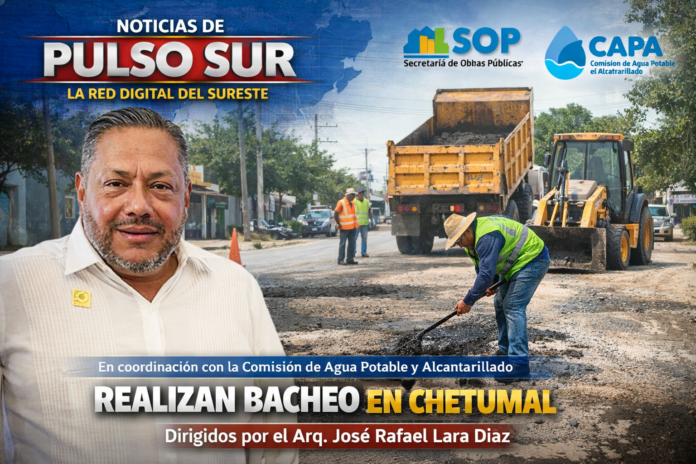 Chetumal, Quintana Roo.– En atención a una petición ciudadana y como parte del compromiso permanente del Gobierno del Estado de Quintana Roo con el mejoramiento de la infraestructura vial, la Secretaría de Obras Públicas, en coordinación con la Comisión de Agua Potable y Alcantarillado (CAPA), lleva a cabo trabajos de bacheo en importantes tramos de la ciudad de Chetumal.