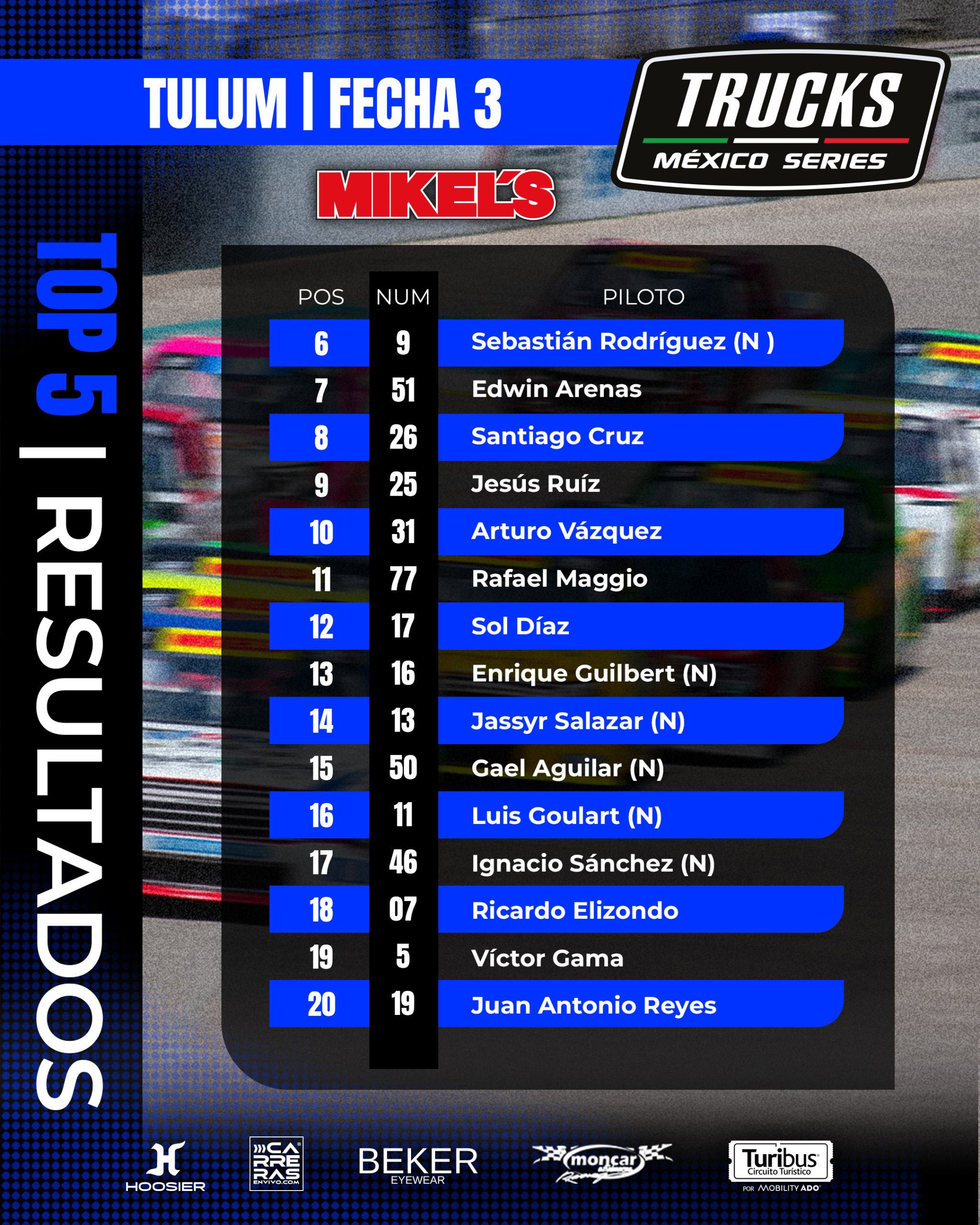 Tulum, Quintana Roo, 26 de abril de 2026.– Carlos Novelo volvió a demostrar su dominio en la Trucks México Series al conseguir su segunda victoria consecutiva durante la Fecha 3 del campeonato.