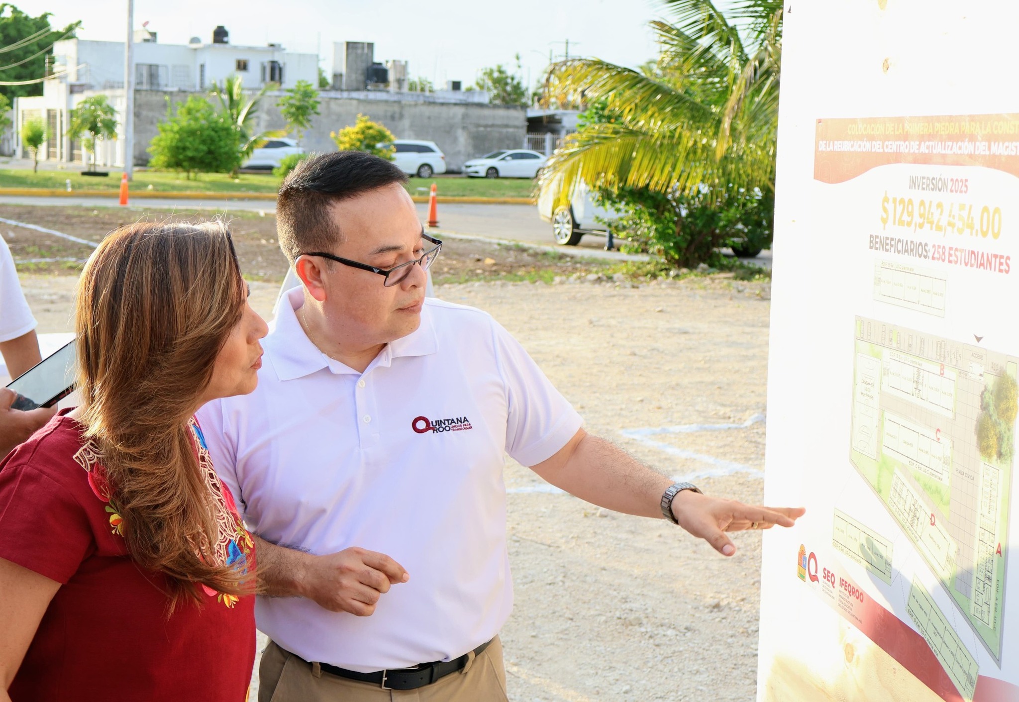 Chetumal, Q. Roo.— Con el firme compromiso de fortalecer la infraestructura educativa en la entidad, el director general del Instituto de Infraestructura Física Educativa de Quintana Roo (IFEQROO), Aldo Andrés Castro Jiménez, encabezó junto con la gobernadora Mara Lezama Espinosa la colocación de la primera piedra del nuevo Centro de Actualización del Magisterio (CAM) en la capital del estado.