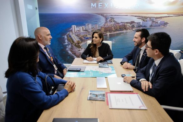 Madrid, España.- En el Pabellón del Caribe Mexicano, Capital Mundial de las Vacaciones, la Gobernadora Mara Lezama Espinosa sostuvo una reunión estratégica con Gustavo Viescas, Presidente de Wyndham Hotels & Resorts, uno de los grupos hoteleros más importantes a nivel mundial.