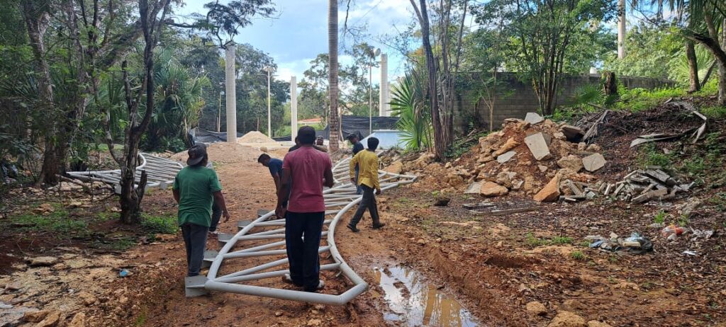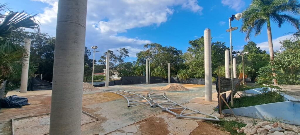 Felipe Carrillo Puerto, Quintana Roo.– La construcción del domo que edifica la Secretaría de Obras Públicas (SEOP) en el Centro Regional de Educación Normal (CREN) de Felipe Carrillo Puerto avanza conforme a los tiempos y etapas establecidas, sin presentar retrasos ni abandono, aseguró el director de la institución, William Miguel González Rodríguez.