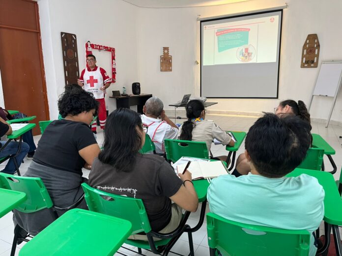 Mérida, Yucatán, a 25 de marzo de 2026.– Con la participación de población civil, grupos organizados y veteranos de la Cruz Roja Mexicana Delegación Mérida, se llevó a cabo el taller “Reducción de Riesgos de Desastres”, impartido por el Referente Estatal José Luis Ancona Cervera, quien destacó la importancia de identificar los peligros a los que está expuesta la comunidad.