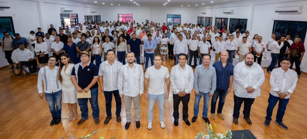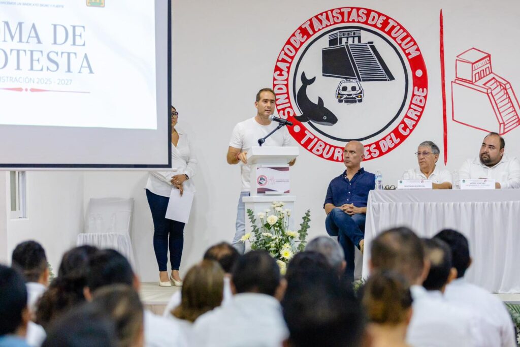 El presidente municipal de Tulum, Diego Castañón Trejo, asistió este fin de semana a la toma de protesta del nuevo Comité del Sindicato de Taxistas “Tiburones del Caribe”, donde destacó la importancia de fortalecer la coordinación entre el gobierno y los gremios para enfrentar los retos del crecimiento urbano de forma ordenada y con visión a futuro.
