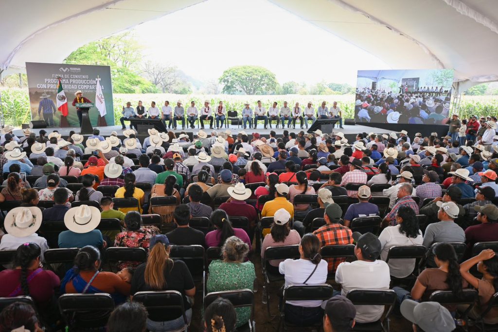 “Para mi gobierno es muy importante estar aquí con las productoras y los productores y darles a conocer que hemos asumido el compromiso de proteger la producción agrícola y ganadera ante el riesgo de catástrofes, así como anunciar estos créditos, que son de fácil acceso y representan un gran apoyo a las actividades que realizan en favor de la prosperidad del campo chiapaneco”, expresó. Además, convocó a las comunidades a no dar paso a la delincuencia y a mantener la unidad, al considerar que esto contribuye a la construcción de la paz.
