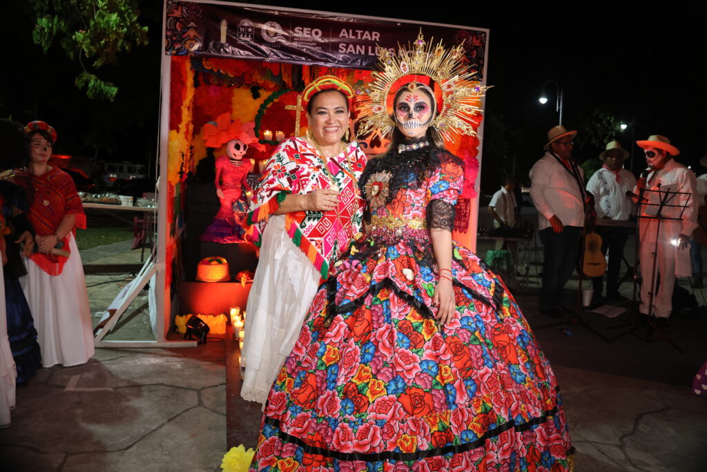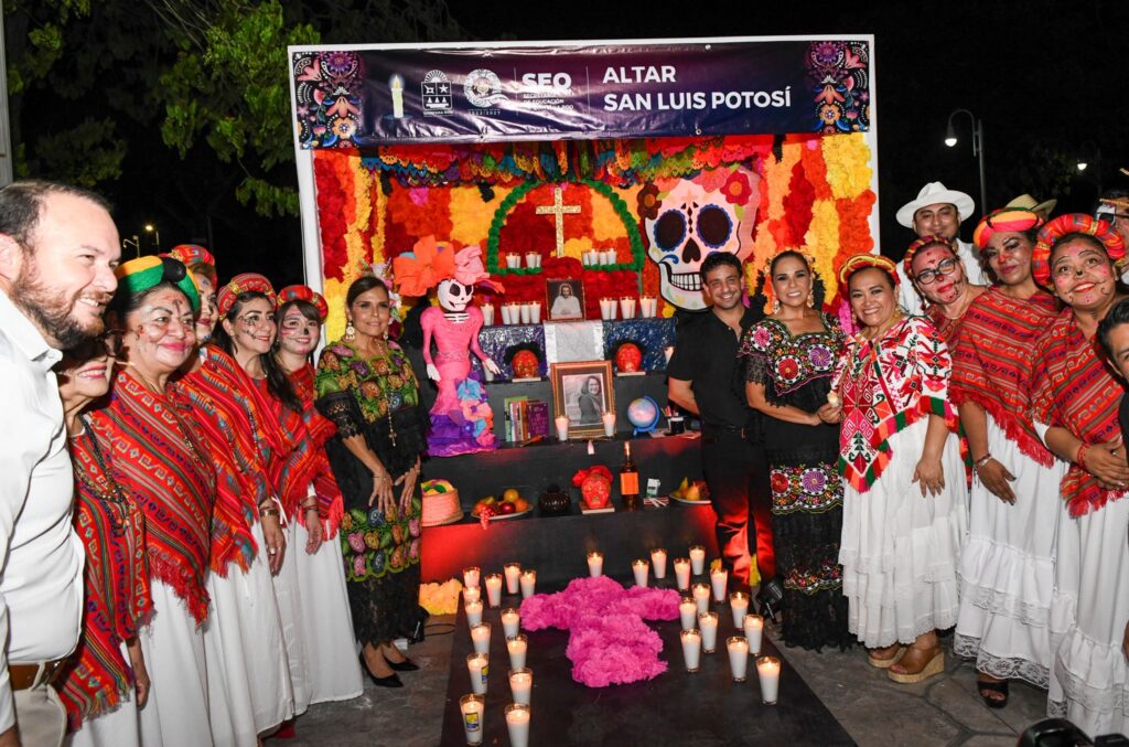 Durante la jornada, la Secretaría de Educación de Quintana Roo (SEQ) instaló un altar dedicado al estado de San Luis Potosí en la Plaza Cívica del Palacio de Gobierno, rindiendo homenaje a la diversidad cultural de México y a las raíces que fortalecen la identidad nacional.