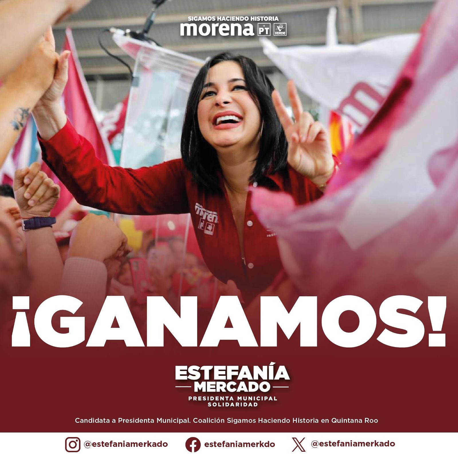 Estefanía Mercado agradeció a quienes trabajaron durante estos tres años en el Ayuntamiento Solidaridad y felicitó a quienes fueron reelectos para acompañarla en el próximo gobierno.