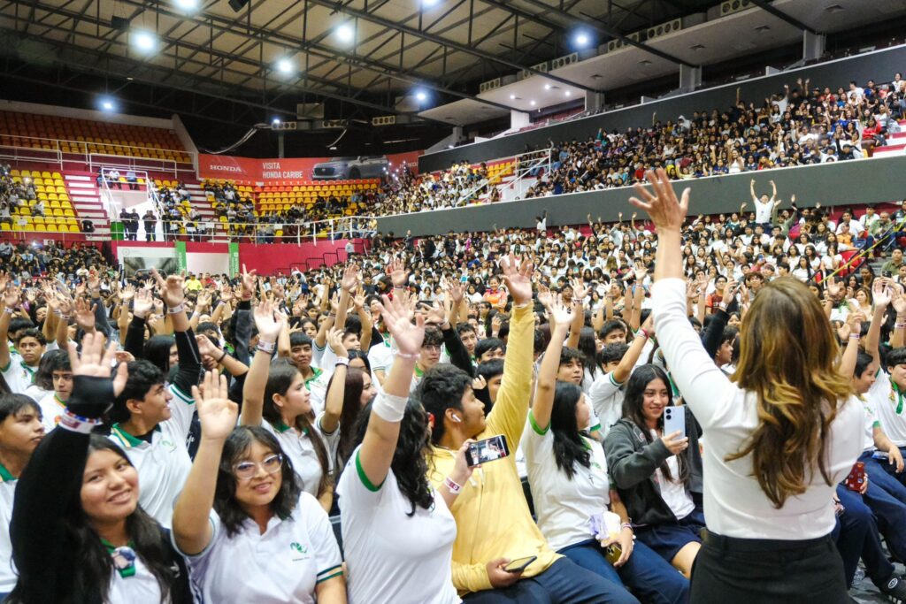 En un evento lleno de energía, reflexión y mensajes de esperanza, la gobernadora de Quintana Roo presentó el innovador programa “Vive Libre”, ante la presencia de más de 4 mil estudiantes cancunenses. Este proyecto, impulsado por el Ayuntamiento de Benito Juárez, busca fortalecer la prevención de adicciones y la cultura de la paz mediante el uso de tecnología de realidad virtual, una herramienta que permite sensibilizar a las y los jóvenes sobre los riesgos del consumo de sustancias y las conductas violentas.