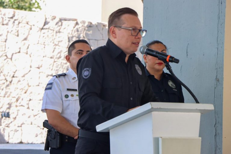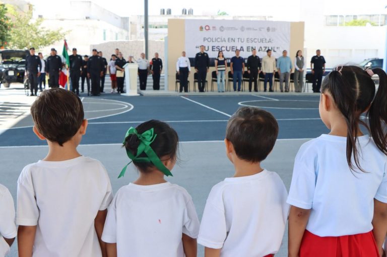 Playa del Carmen, Quintana Roo.- El gobierno de la presidenta municipal Estefanía Mercado, a través de la Secretaría de Seguridad Ciudadana (SSC), llevó a cabo el programa “Policía en tu Escuela”, encabezado por el secretario de Seguridad Ciudadana, Carlos Montesinos García, con la participación de Eduardo Asencio Martínez, presidente honorario del DIF Playa del Carmen.