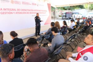 El encabezar la apertura del “Programa Integral de Capacitación Interinstitucional para la Gestión y Atención de Incendios Forestales”, el secretario de Gestión Integral de Riesgos y Protección Civil, Roberto Arroyo Matus, destacó la importancia de trabajar coordinados en la prevención y combate de incendios entre autoridades y sociedad civil, lo que, sin lugar a dudas, dijo, favorecerá la disminución de incidentes y el número de superficie afectada.