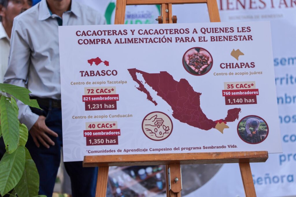 Como parte de los esfuerzos por fortalecer el campo mexicano, el programa Sembrando Vida impulsará la producción, procesamiento y comercialización de cacao bajo el esquema de Alimentación para el Bienestar, promoviendo prácticas agroecológicas y un modelo de comercio justo.