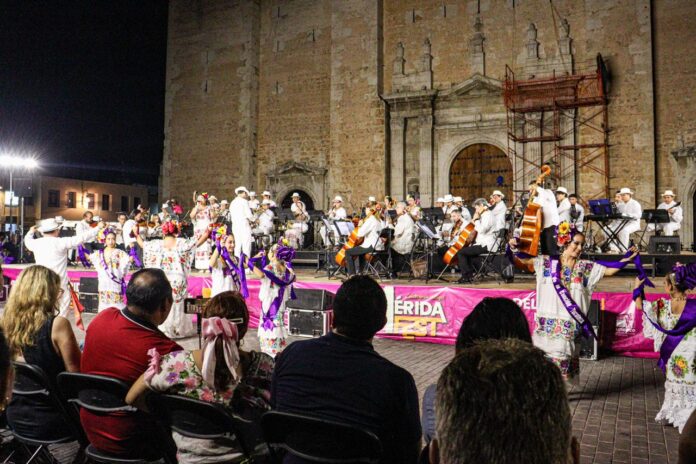La fusión musical entre la Orquesta de Cámara de Mérida y la Orquesta Típica de la Universidad Autónoma de Yucatán ofreció una noche inolvidable durante el Mérida Fest, al interpretar 17 jaranas yucatecas en formato sinfónico, cautivando a meridanas, meridanos y visitantes en la explanada de la Catedral de San Ildefonso.