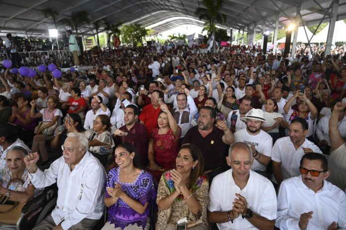 Cancún.- Ante más de 27 mil personas reunidas en el Malecón Tajamar, la presidenta de México, Claudia Sheinbaum Pardo, rindió su Primer Informe de Gobierno al pueblo de Quintana Roo, un evento que, en palabras de Jorge Sanén Cervantes, presidente del Consejo Estatal de Morena y coordinador del Grupo Parlamentario en el Congreso del Estado, marca el fin de “36 años de oscuridad del neoliberalismo en México”.