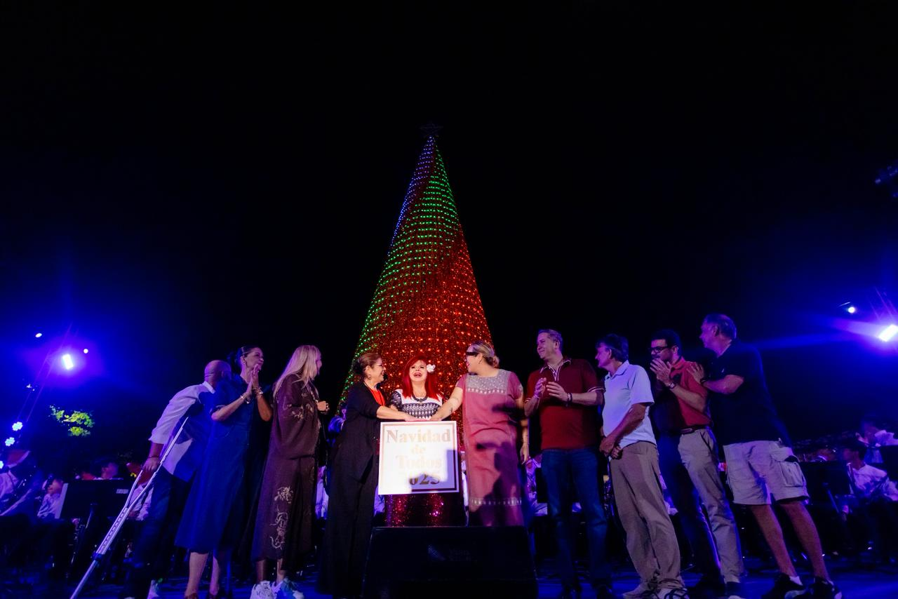 Al pie del gigantesco árbol, integrantes de las bandas infantiles y juveniles comunitarias de Hopelchén, Seybaplaya, Escárcega y Tenabo que, antes, al mediodía, recibieron sus nuevos instrumentos, interpretaron magistralmente diversos villancicos y piezas musicales de la entidad, como Las Torres de Catedral.