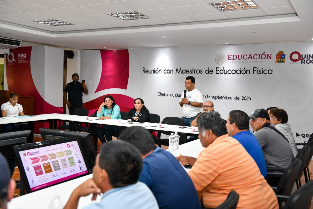 Chetumal, Q. Roo, 18 de septiembre de 2025.– Con el firme compromiso de impulsar la actividad física, la cultura y el arte entre el magisterio, la secretaria de Educación, Elda Xix Euán, sostuvo una reunión con maestros de educación física para coordinar su participación en los Juegos Deportivos, Culturales y Artísticos de los Trabajadores de la Educación en Quintana Roo, que se llevarán a cabo en el mes de noviembre en la capital del estado.