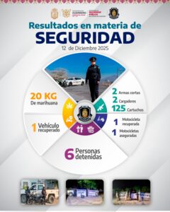 La Secretaría de Seguridad Pública del Estado de Guerrero informa los resultados en materia de seguridad del 12 de diciembre de 2025, como resultado de las acciones operativas y la coordinación interinstitucional.