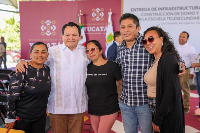Las Coloradas, Yucatán.– Con una inversión superior a 4.1 millones de pesos, el Gobierno del Estado inauguró un domo escolar y la rehabilitación de la cancha en la telesecundaria “Margarita Maza de Juárez”, obra largamente esperada por la comunidad educativa durante 28 años.