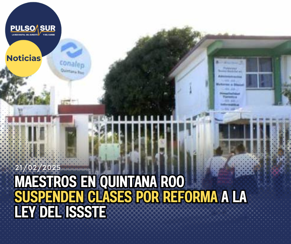 Hoy, viernes 21 de febrero, miles de estudiantes de Quintana Roo se quedarán sin clases debido a una suspensión anunciada por el Sindicato Nacional de Trabajadores de la Educación (SNTE). La razón de esta decisión es el desacuerdo con el punto 25 de la reforma a la Ley del ISSSTE, que plantea un incremento en las cuotas de los trabajadores de la educación.