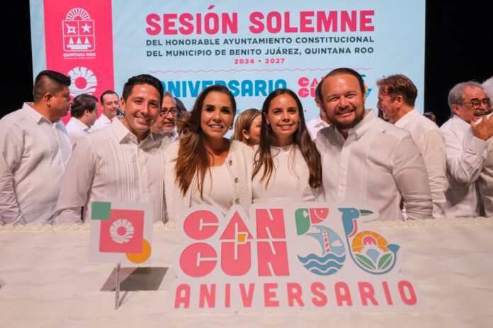 Cancún, Quintana Roo – La gobernadora de Quintana Roo, Mara Lezama, presidió la Sesión Solemne de Cabildo del Ayuntamiento de Benito Juárez, conmemorando el 56° Aniversario de Cancún. El evento sirvió como una plataforma para reflexionar sobre la rica historia de la ciudad y, al mismo tiempo, para trazar un camino hacia un futuro de responsabilidad y esperanza.