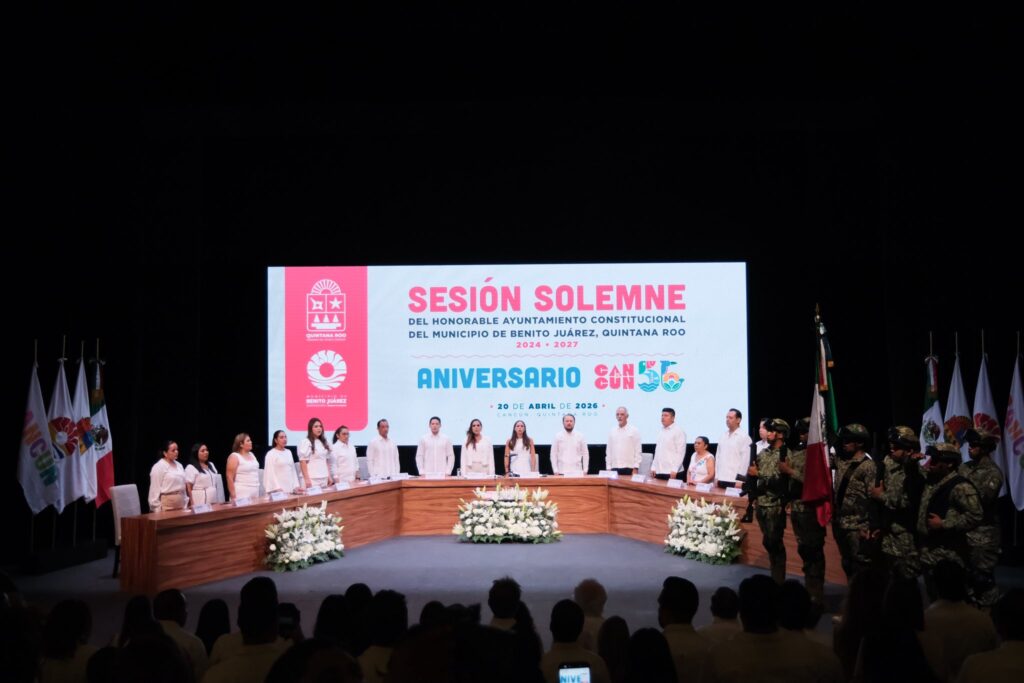 Cancún, Quintana Roo – La gobernadora de Quintana Roo, Mara Lezama, presidió la Sesión Solemne de Cabildo del Ayuntamiento de Benito Juárez, conmemorando el 56° Aniversario de Cancún. El evento sirvió como una plataforma para reflexionar sobre la rica historia de la ciudad y, al mismo tiempo, para trazar un camino hacia un futuro de responsabilidad y esperanza.