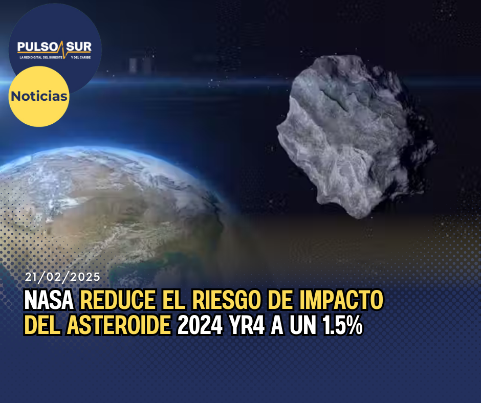 En una actualización alentadora, la NASA ha reducido a la mitad la probabilidad de que el asteroide 2024 YR4 impacte la Tierra. Inicialmente, el riesgo de colisión había alcanzado un 3.1%, pero con nuevas observaciones realizadas en las últimas horas, el riesgo ha sido recalculado a solo un 1.5%.