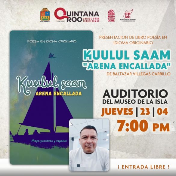Cozumel.- Con la finalidad de contribuir a la divulgación de la literatura y la lengua Maya, la Fundación de Parques y Museos de Cozumel (FPMC) invita a la comunidad a la presentación del libro “Kuulul Saam” (“Arena Encallada”), del escritor Baltazar Villegas Carrillo, una obra que celebra la esencia, la memoria y la identidad de la isla. El evento será el jueves 23 de abril, a las 19:00 horas, en el auditorio del Museo de la Isla, con entrada libre y abierta a todo público.