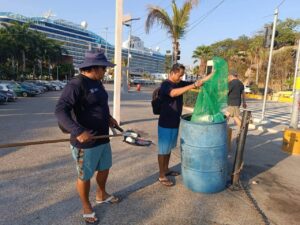 Promotora de Playas Acapulco realizó labores de limpieza y barrido manual en el Parque de la Reina, ante el arribo del crucero MS Vista
