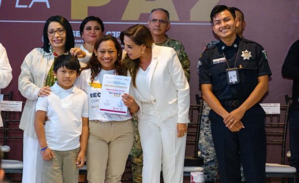 Cancún.- La gobernadora Mara Lezama Espinosa encabezó la ceremonia de graduación de la primera generación de beneficiarios de la Estrategia Nacional “Reconecta con la Paz”, un programa enfocado en la reinserción social de jóvenes y la prevención de la reincidencia delictiva, que en su arranque logró la conclusión exitosa de nueve participantes.