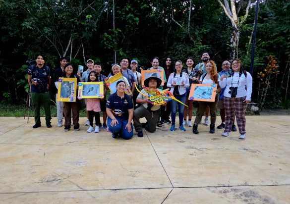 Durante la tarde, familias completas participaron en una caminata guiada para conocer las especies que habitan en el parque y escuchar las leyendas mayas del colibrí, el pájaro carpintero, el tordo ojos rojos y el zopilote, relatos que reflejan la conexión espiritual del pueblo maya con la naturaleza y los mensajes de respeto, transformación y equilibrio que transmiten estas aves.