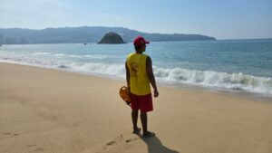 Acapulco, Gro., 30 de octubre de 2025. – La Promotora de Playas Acapulco informó que debido al fuerte oleaje generado por el fenómeno de mar de fondo, este jueves se reforzaron las labores de vigilancia y prevención en las diferentes playas de la bahía.
