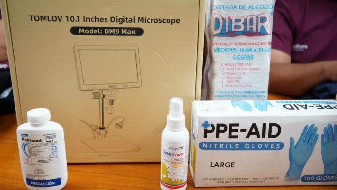 El apoyo fue destinado a 15 especialistas que integran esta estrategia, quienes recibieron guantes, gasas, Negasunt, desparasitantes, computadoras, impresoras, uniformes, microscopios, ivermectina, deltametrina y kits para toma de muestras. Estas herramientas permitirán mejorar las labores en campo y optimizar la respuesta ante los casos detectados.