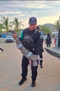 El ejemplar fue asegurado en la playa de Puerto Marqués, en el municipio de Acapulco, derivado de un reporte ciudadano al número de emergencias 911.