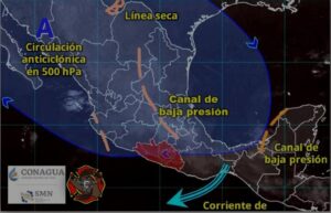 En su reporte meteorológico, la dependencia estatal dio a conocer que esto se debe a que un canal de baja presión se extiende al noroeste del valle de México y, por otro lado, un sistema anticiclónico en 5.5 kilómetros de altitud localizado sobre Sonora afecta incluso a Guerrero.