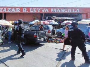 Personal de la Policía Estatal de la Secretaría de Seguridad Pública mantiene recorridos de vigilancia al exterior e inmediaciones del Mercado Central Baltazar R. Leyva Mancilla, como parte de las acciones permanentes orientadas a contribuir al orden público, prevenir la comisión de delitos y generar condiciones de tranquilidad para comerciantes y ciudadanía en general.