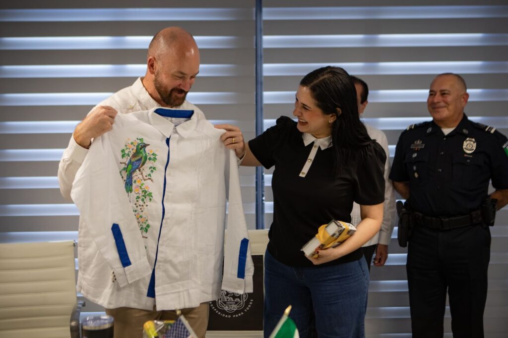 Además, la presidenta municipal, junto al secretario de Desarrollo Económico y Atracción de Inversiones, Antón Bojórquez, abordó la propuesta de impulsar la comercialización de productos locales en Estados Unidos, así como establecer hermanamientos con ciudades de ese país para fortalecer la cultura, el turismo y la economía.
