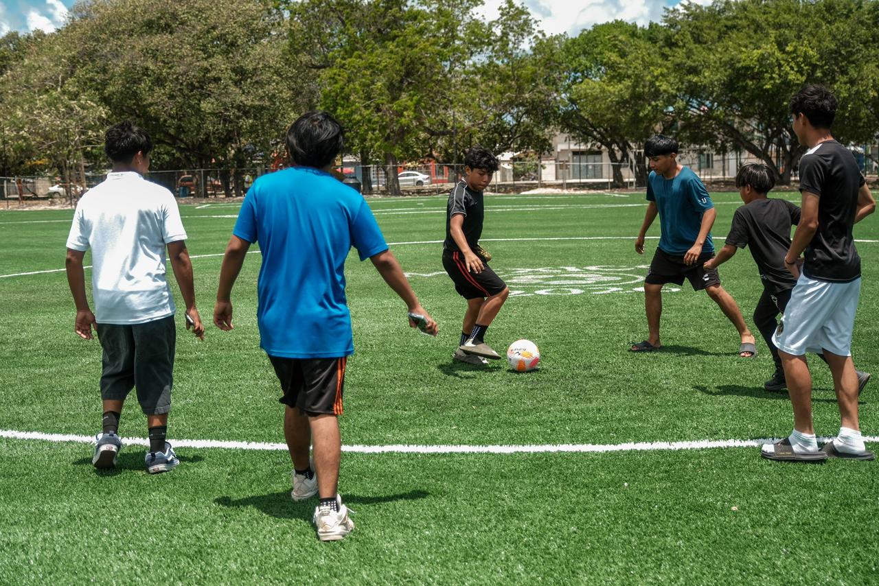 Con la presencia del representante de la SEDATU en Quintana Roo, Fredy Ramos; del director del deporte en Benito Juárez, y del profesor de fútbol, Ranulfo Solís Benítez, Mara Lezama detalló que en Cancún se contemplan ocho intervenciones deportivas, que incluyen dos canchas de fútbol 5, una cancha de fútbol 11 y el mejoramiento de cinco multicanchas, con una inversión superior a los 12 millones de pesos, en beneficio de más de 40 mil habitantes.