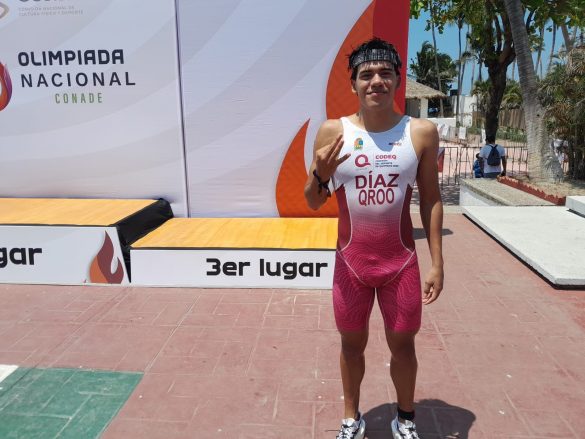 Nayarit.- Con una excelente muestra de habilidad y resistencia física, el atleta quintanarroense Raúl Emiliano Díaz Rodríguez conquistó una medalla de bronce para Quintana Roo, esto al tomar parte en la disciplina de Triatlón, al continuar con la actividad de la Olimpiada Nacional CONADE 2026, que se escenifica en Bahía de Banderas, Nayarit.