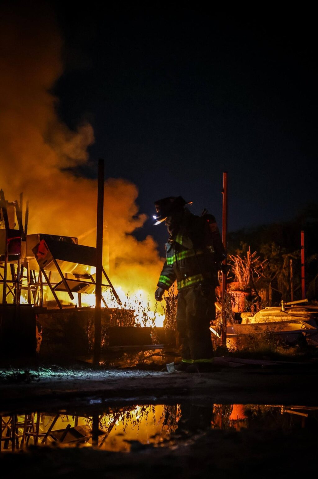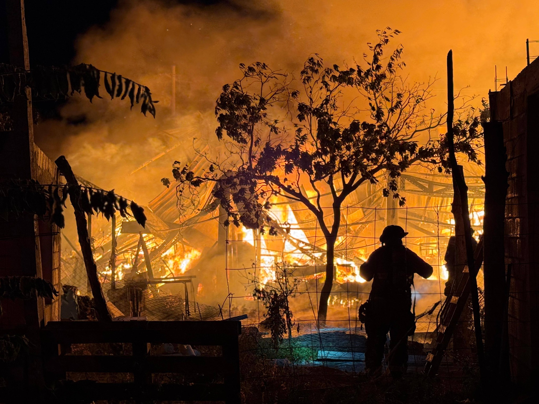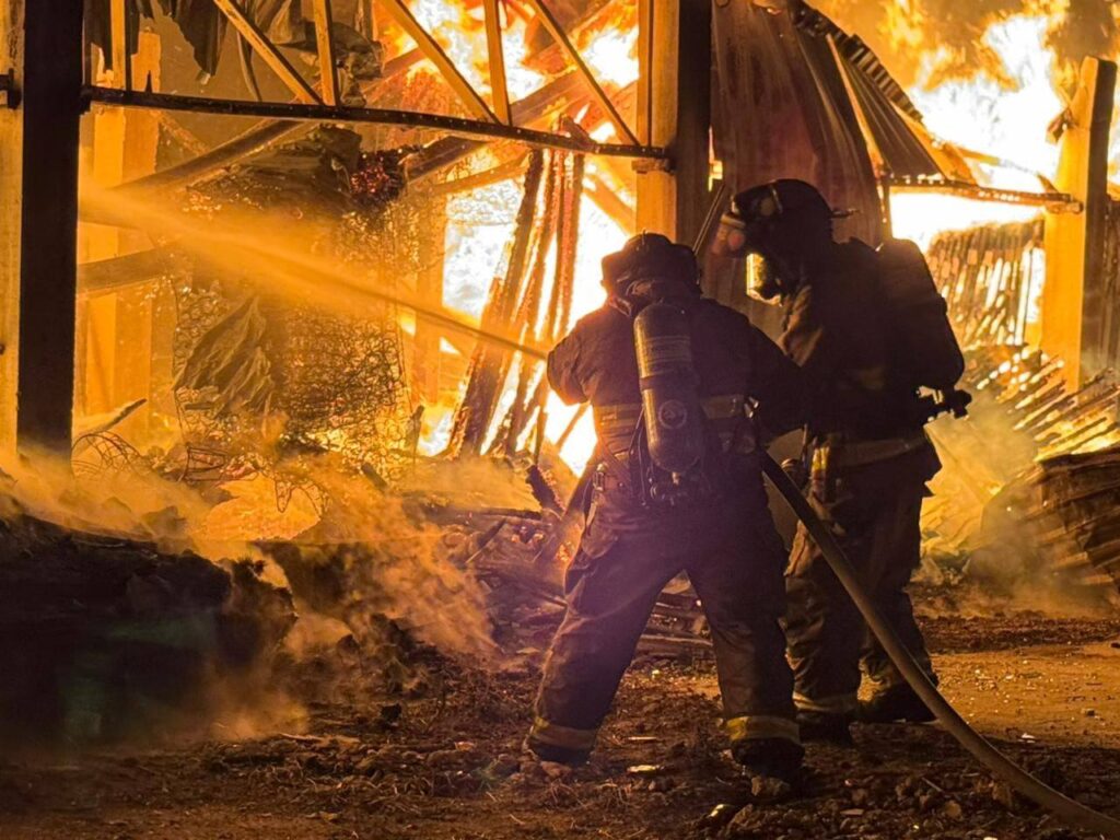 13/Enero/2026.— Un fuerte incendio registrado la tarde-noche de este jueves redujo a cenizas una bodega de mobiliario hotelero ubicada en la región 247 de Cancún, dejando importantes pérdidas materiales y generando alarma entre vecinos de la zona.